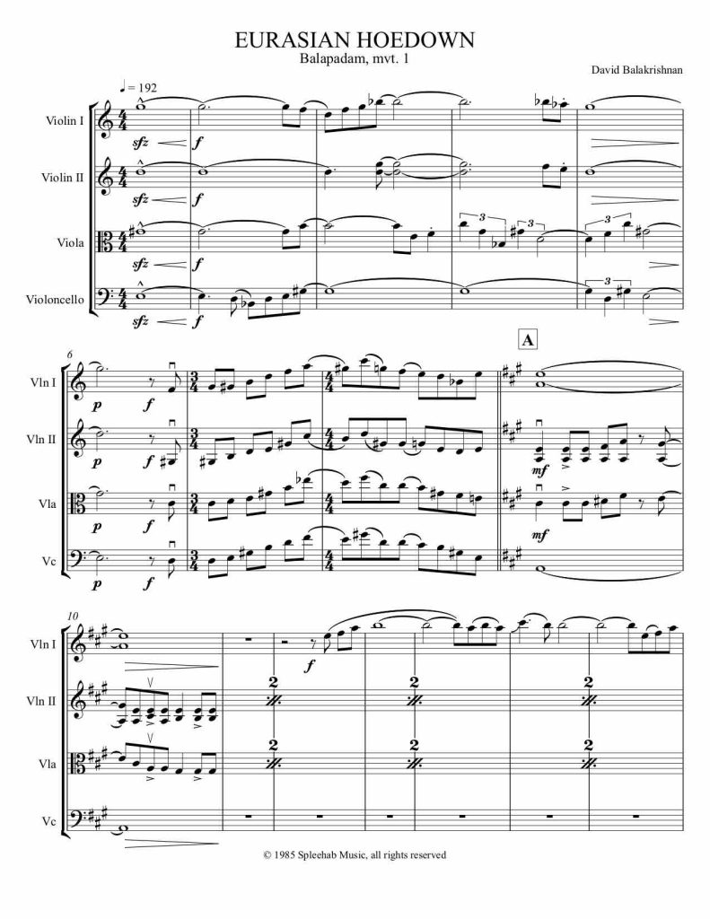By David Balakrishnan, for string quartet. As heard on the eponymously titled debut TISQ CD
