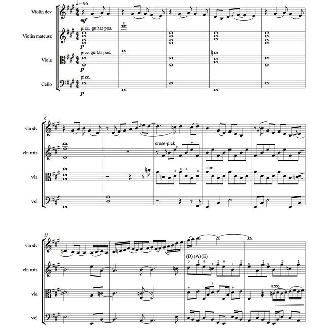 By David Balakrishnan, for string quartet. As heard on Mike Marshall and the Turtle Island Quartet.