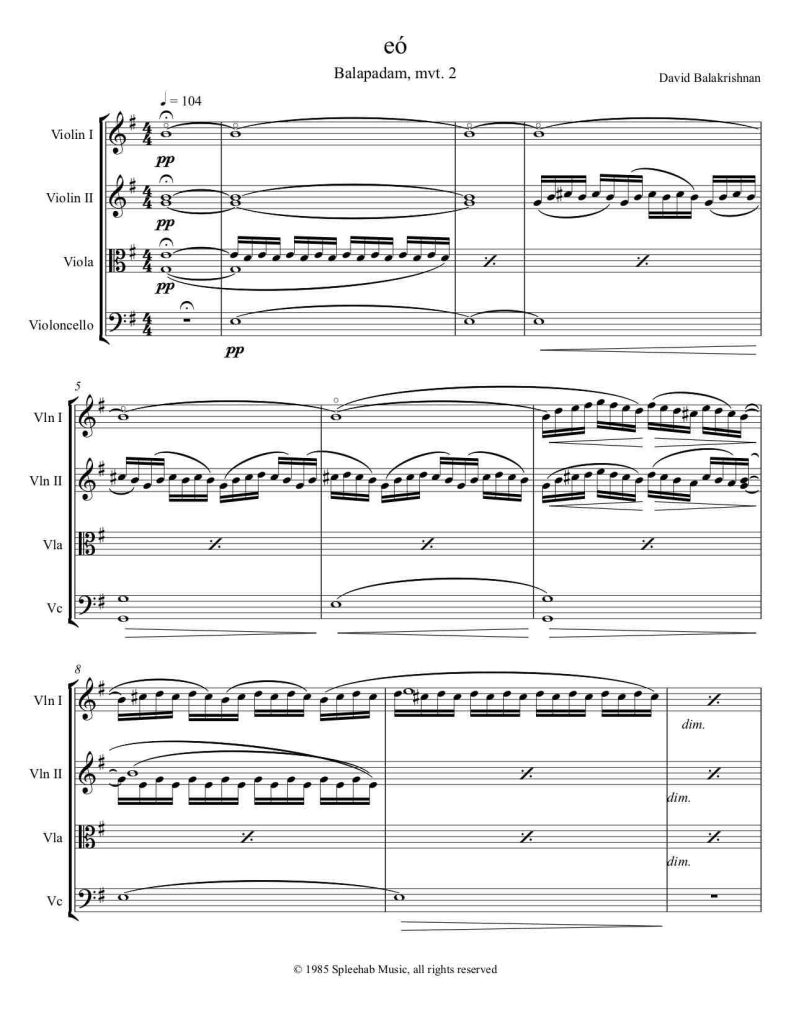 By David Balakrishnan, for string quartet. As heard on the eponymously titled debut TISQ CD